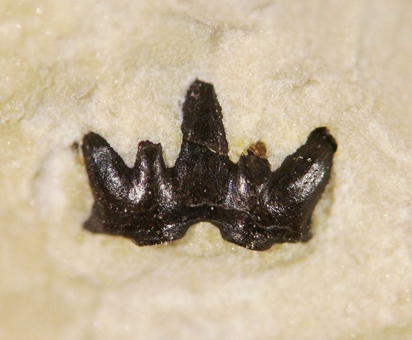 Campodus may have been a plankton feeder, eating algae and tiny organisms that essentially floated and carried at will by the currents in the near surface ocean waters. Some individual Campodus may have grown to become some very large creatures. Its' teeth do not have the sharp edges that would be suitable for tearing flesh and the tiny ridges across the crown of the tooth do not suggest it was suitable for crushing shells of invertebrates such as brachiopods. A more or less complete specimen in the University of Nebraska State Museum Collections that was collected by the late W. D. "Ted" White that is about one meter long is preserved in black shale, and its largest lateral teeth are about 15 mm wide. Some individual Campodus teeth also collected by Mr. White are over 100 mm wide. These large teeth suggest some very large fish, perhaps as long as 13 m (40 ft). The are also some "V-shaped" teeth that have also been attributed to the genus Agassizodus. Such teeth are called symphysials and they were positioned in the middle of the mouth at the plane of symmetry that extended the length of the fish.