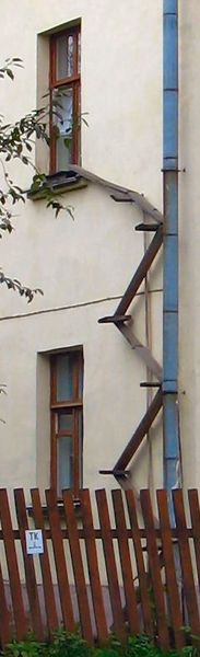 Посмотрите, как интересно житель квартиры на втором этаже обеспечил своему коту прямой доступ на улицу. Монументальное инженерное сооружение с площадками для отдыха и разворота, трамплин для прыжка в форточку.