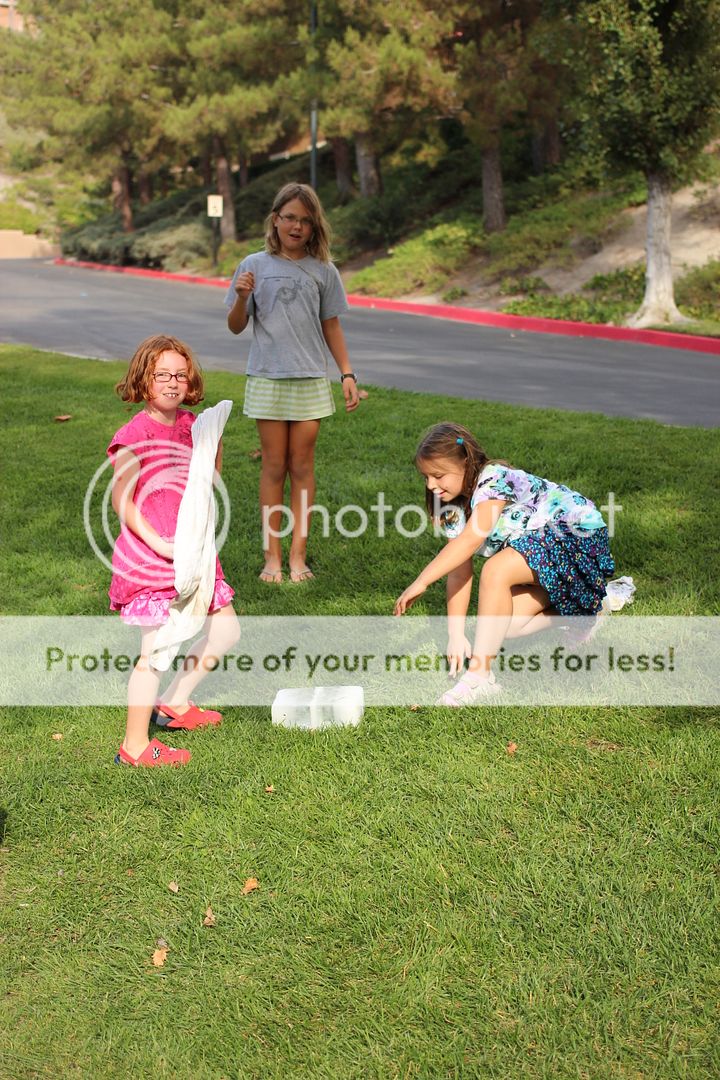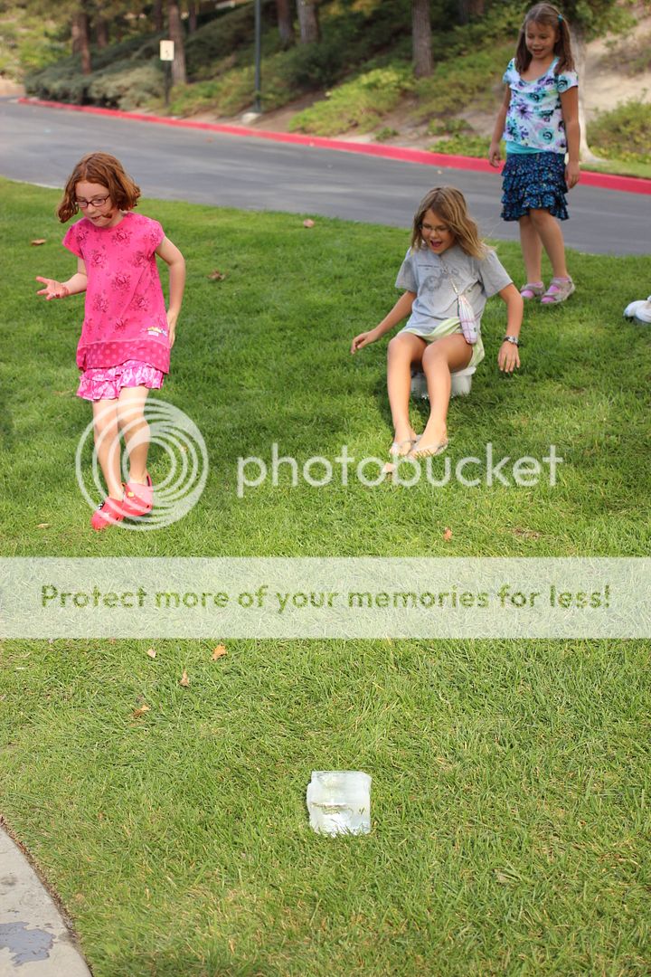 кирпичи льда покупали в продуктовом (у нас это Ralphs/Krogers на районе), покрывали их вышедшими из употребления полотенцами - и вперед, с низенькой горочки и с визгами;)