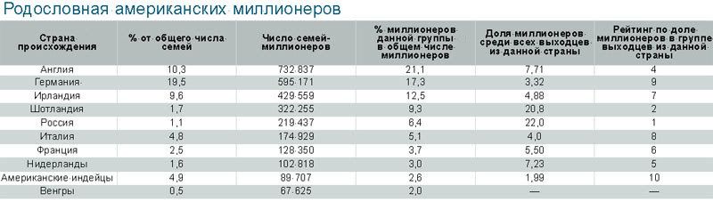 Два факта, которые меня удивили и которые многое объясняют. 1) безработица в центральных и северо-западных областях России практически отсутствует, составляя в Москве 0.6% от трудоспособного населения, в Санкт-Петербурге – 2.2%, а в Московской области – 3.3%0.6% по Москве! Будут еще вопросы, почему так трудно найти толкового работника?! 2) Итак, выходцы из России составляют всего 6% от общего числа американских миллионеров. Но зато больше 22% из них стали миллионерами (напомню, что средний по США процент миллионеров 3,5%, т. е. в среднем выходцы из России в шесть раз чаще становятся миллионерами, чем американцы). Это самый высокий показатель среди всех этнических групп в США. Конечно, здесь нужно сделать массу оговорок, начиная хотя бы тем, что данные, приведенные в книге, датируются 1997 годом.Мне кажется, эта статистика ставит крест на мифе о "русских-азиатах" и "русских-дикарях". Как бы там ни было, а люди, выросшие в СССР, оказываются вполне конкурентоспособны в мировом масштабе. Так что Звездная Россия - никакая не фантастика, а неизбежное будущее человечества :)
