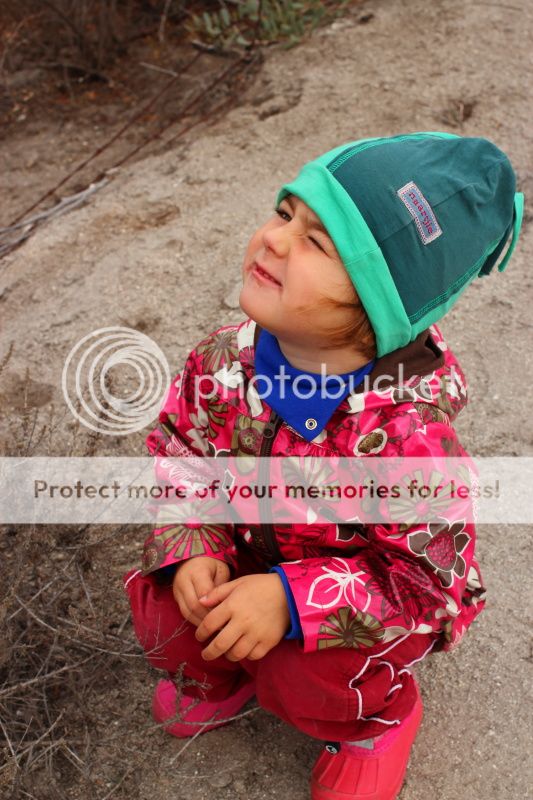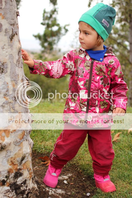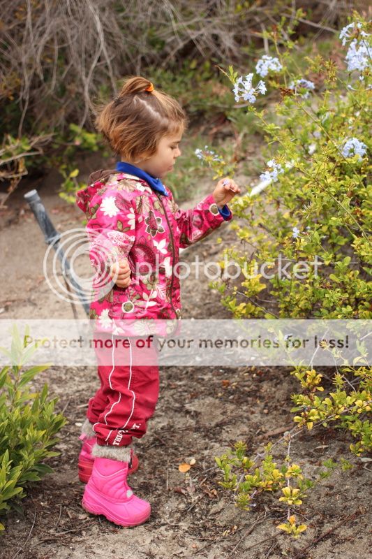 по-моему, Еве тоже надоела жара и солнце... она с таким удовольствием надевала плащик и сапоги, рассматривала и щупала одежку и обувку;))) а это ж модненькое сенсорное развитие...