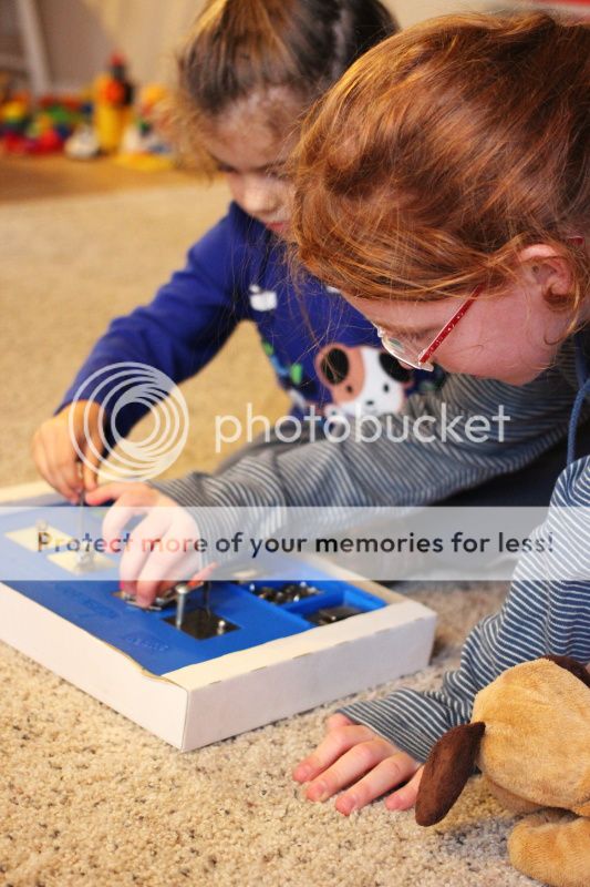 после обеда забрали Полину, попали под дождь, пришли домой мокрыми мышами;) переоделись, немного поиграли дети в магнитный конструктор образца 80 года сделанно в Израиле!:) куплено на какой-то гаражной распрадаже, еще когда мы на Севере Калифорнии жили.