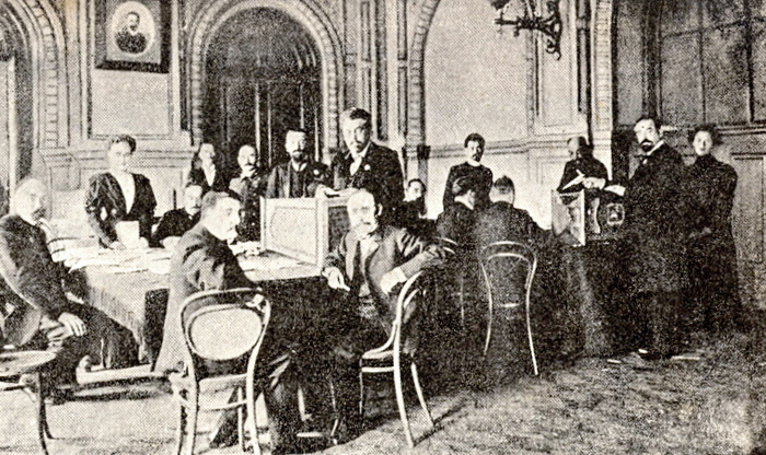Выборы членов въ 3-ю Государственную Думу въ 1907 г.. - Подсчётъ бюллетеней по Тверскому участку въ зданiи городской Думы.