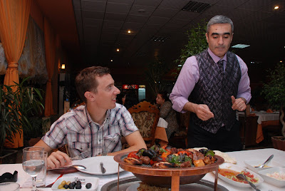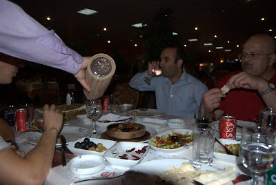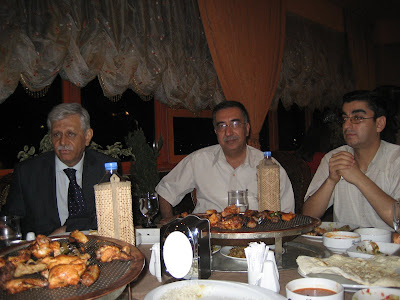 Ирак, Курдистан. Часть IV Часть I Часть II Часть III Особенности национальной еды, общепита, времяпровождения и .... WC В Сулеймании много ресторанов. Далеко не все могут похвастаться чистотой и сервисом. Есть и фастфуд, пицца, шаверма, некий фалафель, какие-то салатики. Некоторые ресторанные меню были достойны увековечивания в цифре, но я постеснялся их демонстративно фотографировать. Отдельные перлы: Gordon Blu, File Ninjon, French fraiz, Kentaki. Последний термин стал у нас словом нарицательным, активно вызывающим неприятие. Под Kentaki у местных коков подразумевается имитация продукции американского junk food - Kentucky Fried Chicken, т.е. части цыплят во фритюре, снаружи хрустящие, внутри сухие и безвкусные. Некоторые рестораны, по большей части при отелях предлагали европеизированные Buffet обеды, вполне съедобные, но скучные. Самыми приятными местами чревоугодия для нас стали ресторан гостиницы Assos и ресторан Dawa. Первый располагался через дорогу от нашего отеля, и в силу своего географического расположения, стал первым местом, куда мы устремились после того, как kentaki ресторана нашего отеля встал уж совсем поперек горла. В Assos е было прохладно, солидно и вкусно. Перепробовав за неделю добрую треть меню, мы выбрали себе устойчивый набор, который с небольшими вариациями всегда и заказывали себе на ланч: салат с руколой, бейрутский хумус, свежий горячий курдский хлеб и какой-нибудь кебаб, который мы ласково стали называть кебабчиком. Пара-тройка шишей (шампуров)на человека или хороший стейк - и ты счастлив. Набор, правда, вполне космополитический, хотя не без восточного колорита. ![]() С рестораном Assos связана и другая забавная история. Не знаю, откуда там взялась эта музыка, но периодически наш слух ублажали Виагра, Михаил Круг и бессмертный хит "Ах какая женщина" ))) Когда я в первый раз услышал "Владимирский Централ", то чуть не подавился кебабчиком, зато потом, с чувством подпевал: " В шумном зале ресторана, средь веселья и обмана, пристань загулявшего поэта . Возле столика напротив Ты сидишь вполоборота Вся в лyчах ночного света...." )))) Все это разбавлялось Демисом Русосом и Джо Дассэном. И последний штрих: Мэтром был приветливый и юморной парень по имени Сулейман - ненавязчивый, но очень -очень предупредительный. Я доволен Assos ом: В ресторан Dawa нас привёз Бурхан, представитель фирмы, проплатившей университету наш приезд. Сам он из турецких курдов и привёз к своим землякам. В этом ресторане вкусно было всё: и суп, и рыба, и разнообразные закуски и великолепный турецкий сладкий пудинг - сутлач. Впоследствии мы не раз просили Бурхана отвезти нас на ужин в Dawa, включая официальный динер с ректором университета. Mixed-Grill от Dawa: Сутлач: Динер с университетским начальсьвом: Итальянский ресторан "Roma" и китайский "Great Wall" оказались пародиями на итальянскую кухню и чайниз соответственно. Случайно мы обнаружили совсем недалеко от нашего отеля "Cafe Melody" - настоящий оазис для изголодавшегося по эспрессо, латэ и каппучино европейца. У них была настоящая, профессиональная, итальянская кофейная машина , которой они умели правильно пользоваться, итальянское мороженое, всяческие freshly squeezed соки и прочие smoothies. На рояле выпускник консерватории наигрывал что-то из Синатры, бармен бегло болтал на английском, чистота, порядок и дизайнерская rest-room. Стоит ли добавлять, что в этом кафе мы стали завсегдатаями. Саfe Melody: !