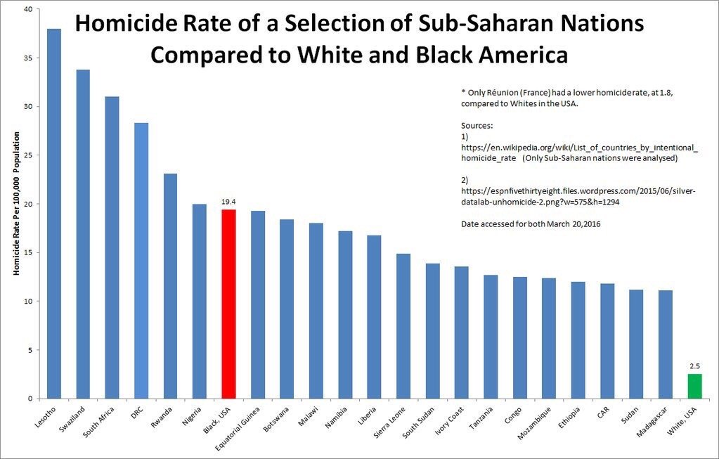 Но если посмотреть как раз соотношение кроссрасовых престурплений, там разница по уровню убийств на душу преступника будет не 8 раз а более 20. То есть на одного убитого черного сто тысячами белых ихные сто тысяч ребяток убивают 20 белых, есличо.