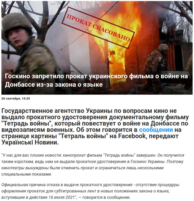 Антироссийский фильм запретили, тому що там есть реплики на русском языке.