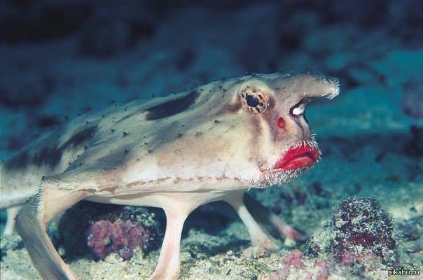 Рыба с накрашенными губками очень красивая. Она наверное скорее подманивает на такие-то губки.