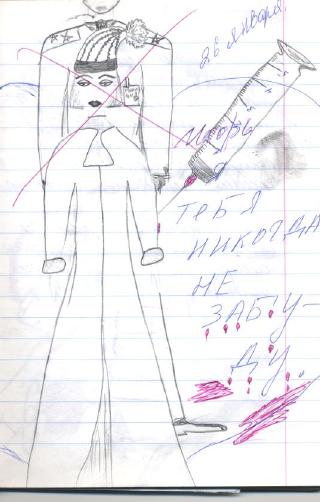 Вы думаете в платье (или это ряса?) и шапочке Игорь? И что-то больно звездастый мент для ареста. Полагаю тут что-то другое изображено. Хотя не знаю, дневник не читала.