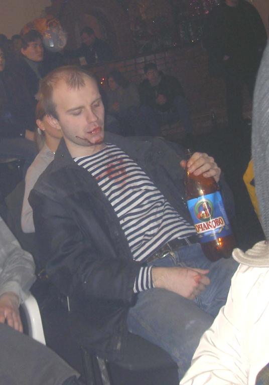 > "избитый мертвецки пьяный «матрос» в окровавленной > тельняшке  ужас! > колоритный бородатый тип, внешне напоминающий > попа, который чуть не захлебнулся собственной > блевотиной А вот этот красавец, судя по фоткам половину концерта рядом с Ареховским провел )))) Негатива нахватался.