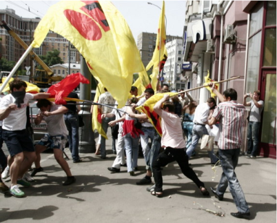 униженные, эсеры пошли в рукопашную. В ход пошли кулаки, ноги, древка