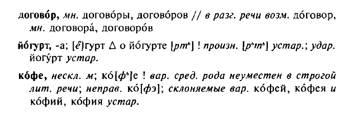 Давайте глянем, по какому принципу составлены предлагаемые изменения. Больше всего возмущения вызвало изменение рода кофе с мужского на средний. Аргумент «в русском слова на -е среднего рода» — не валиден. Скажем, слова на -а — женского, однако «мужчина» — какого рода, ась? Или «детина». Исключения — на то и исключения. Но все еще интереснее. Вот словарь ударений Резниченко, входящий в «список четырех», построен по тем же принципам, что и ее орфоэпический словарь (2003), то есть пометы там будут такие:  Все наглядно: да, есть кофе в среднем роде. Неуместный в литературной речи. Как и «кофЭ». Допустим, понятно, в разговорной просторечивой. Как и «улЯтели». Т.е. в этом случае идет замена литературного языка на просторечивый вариант. Вопрос — а зачем? Мол, «все так говорят»? Не знаю, у меня все знакомые прекрасно знают, какого рода «кофе» в русском языке. Впрочем, согласен, что кофе в пакетиках — это «оно», но это совсем другая история. Очевидно, что мотив тут — «чтобы не заучивать исключения». Ага, давайте тогда писать «оловяный, стекляный и деревяный» и «уш замуш невтерпешь». Здесь глаза режет, да? А ведь тоже — исключения. Кстати, кофе действительно может иметь средний род — в значении «кофейное дерево». Правда, можно нарваться и на такое мнение: « Раньше было "правильно == нелогично (исключение)". Сейчас стало "правильно == логично (согласно правилам)". Сейчас стало лучше. И да, исправление "оловянный/стеклянный/деревянный" тоже будет благом. Где что не так? Вот скажи мне прямо, какой смысл плодить исключения, которые надо специально запоминать, которые постоянный источник ошибок, с которыми геморрой при создании машинной морфологии и так далее? Вопрос понял, ответ отвечаю. Некорректная подмена «правильно» на «логично». И еще одна подмена — никто не говорит, что надо плодить исключения, т.е. вносить их в язык специально. Но это не значит, что надо исключения «выводить» из языка. О роли исключений — позже, а сейчас смотрим на предлагаемые изменения дальше. Йогурт заменен (сделан допустимым вариант) на «йогУрт». Если в случае с кофе можно было сослаться на «так говорят», то я ни разу в жизни не слышал, чтобы кто-либо говорит «йогУрт». Причина понятна: звучит слово как «ёгурт», а «ё» в русском языке всегда ударное. Таким образом, тут предлагаемый вариант идет вопреки структуре русского языка, но все равно предлагается, так как слово заимоствованное из другого языка. Причем заимствовано-то оно из английского вместе с ударением — так что аргумент не катит. А как называлось в том языке, откуда заимствовал английский — как-то не существенно. Особенно если учесть, что современный йогурт — это не совсем то, что имели в виду тюрки. Согласен — пусть то, что изначально имелось в виду, будет йогУрт, и разливается в бурдюки, чтобы не путать с нормальным современным йогуртом. Файф-о-клок — теперь русское слово.Я файф-о-клокаю, ты файф-о-клокаешь, он файф-о-клокает, мы файф-о-клокаем… Отфайф-о-клокавшись, мы... Можно, я это комментировать не буду? Интернет с большой буквы.С чего бы это?! А интранет чем хуже? Таким образом, нововведения эклектичны: нет единой системы: с бору по сосенке, при этом другие сосенки в соответсвующем бору не затрагиваются. В самом деле, если кофе — среднего «по правилам», то давайте все исключения аннулируем. «Уш как мне хотелось свежее кофе из стекл