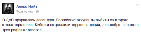 Ну, это инфа, котора была подтверждена и в других сообщениях. Лень было скринить, а тут она была дана джипегом и легче вставить в сообщение. 8) Факт остается фактом - русские СМИ третий день рапортуют о взятии, а аэропорт еще украинский..