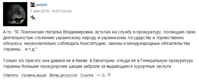 У Поклонской ужасный взгляд- то ли героини-революционерки на коксе, то ли шизофренички. Все эти прянички на подоконничке, для домовых, хождения с портретом кумира, ожесточённое преследование *хулителя* кумира, всё-таки склоняют меня к версии психического заболевания.