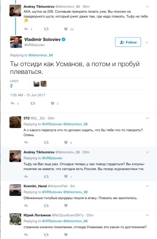 Интересно, почему другому фашистскому рупору -"представься мрази" соловьеву позволяют наслаждаться, не побоюсь этого слова, плодами Западной цивилизации? Вроде бы тот совсем недавно хвастался селфи своей мерзопакостной хари, сделанные в Италии... А ведь он может быть даже большее зло; во всяком случае является передовиком в деле пропаганды агрессии и соответствующем "разогреве" населения рф. Хотя, может я чего и пропустил.