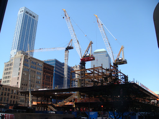 Почти год назад, когда ездил в Нью-Йорк побывал на Ground Zero. На месте где стояли Башни-Близнецы сегодня кипит огромная стройка. Хорошо охраняемая, её можно фотографировать лишь со специально отведенных площадок, все подходы, подъезды к которой тщательно охраняются. Новый комплекс, состоящий из трех небоскребов, должен открыться в 2013 году. Одно из зданий будет называться "Башня Свободы". Макет всего комплекса можно увидеть в мемориале неподалеку.