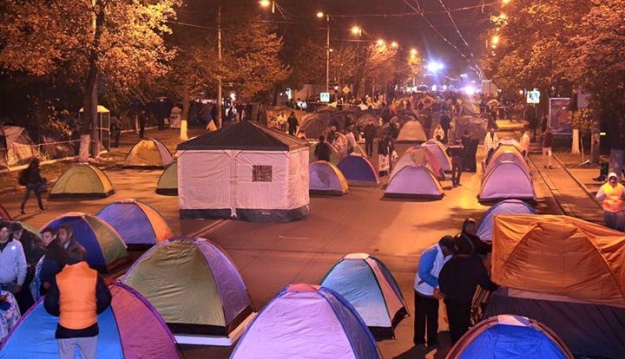 С подробностями из Кишинева – Вячеслав Крачун для "Европейской правды".* * * * * Левая оппозиция – две партии пророссийской ориентации, – присоединилась к демонстрациям в Кишиневе еще в конце сентября. Но на минувших выходных они попытались стать лидерами протеста не на словах, а на деле. В ночь с пятницы на субботу пророссийские демонстранты перекрыли на сутки центральную улицу Кишинёва – проспект Штефана чел Маре, выстроив на проезжей части палаточный городок, который до того ютился на тротуаре. А в воскресенье депутаты-социалисты попытались собрать экстренное заседание парламента, на котором планировали вынести вотум недоверия правительству и в очередной раз потребовать роспуска парламента. И хотя в этот день представители Партии социалистов Республики Молдова (Соцпартия, ПСРМ) оказались единственными депутатами, пришедшими в сессионный зал, они воспользовались парламентской трибуной, чтобы пригрозить "нарастить давление на власть" и выдвинуть новые требования в адрес правительства. Одним из таких требований стало изменение Конституции для всенародных выборов президента (сейчас президента Молдовы избирает парламент). А поскольку правящее большинство наверняка проигнорирует эту инициативу, ПСРМ планирует начать сбор подписей за проведение референдума по данному вопросу. Фото DWРеакция второго протестного лагеря появилась уже в воскресенье, во время очередного массового митинга. В субботу пришлось сделать перерыв на непартийное мероприятие – день вина. И этот эпизод – одна из лучших иллюстраций того, что протесты в Кишиневе, даже став массовыми, не получили действительно всенародной поддержки. Вспомнить, как все начиналосьКогда в начале сентября в Кишинёве прошёл массовый антиправительственный протест правой оппозиции, многие, было, окрестили это событие "молдавским Майданом". Палаточный городок на центральной площади столицы, требование об отставке "всех и вся" и о проведении европейских реформ, обвинения в адрес власти в коррупции и финансовых преступлениях – лишь часть схожих признаков. Хотя сами демонстранты были категорически против каких-либо сравнений с украинским Майданом, подчеркивая, что не будут применять силу ни в коем случае.Впрочем, впоследствии митинги платформы DA успели превратиться в караоке на центральной площади, где однотипные выступления с трибуны сменялись прослушиванием популярных 20 лет назад национально-патриотических баллад. И уже не ясно было, для чего на самом деле собираются участники этого действа. От многотысячного протеста остался установленный перед зданием правительства городок примерно из сотни палаток, ставший на некоторое время новым элементом городского пейзажа, не особо раздражающим власть. Фото "Панорама"С 27 сентября новый фронт протестов открыла коалиция двух левых и откровенно пророссийских партий – уже упомянутой ПСРМ под руководством Игоря Додона и "Нашей партии", которую возглавляет популярный, классического популистского толка политик Ренато Усатый. Той самой партии, которую ЦИК Молдовы отстранил от участия в парламентских выборах в ноябре прошлого года, буквально за сутки до дня голосования, обеспечив тем самым победу проевропейской коалиции на выборах. Эта история не оставляет шансов на примирение левых с властью. И не удивительно, что требования