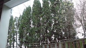 Идет снег. Правда, к слову “идет” — это явление подходит мало. Снег валит крупными хлопьями, и все это происходит при сильнейшем ветре. Такое впечатление, что снег несется параллельно земле.
