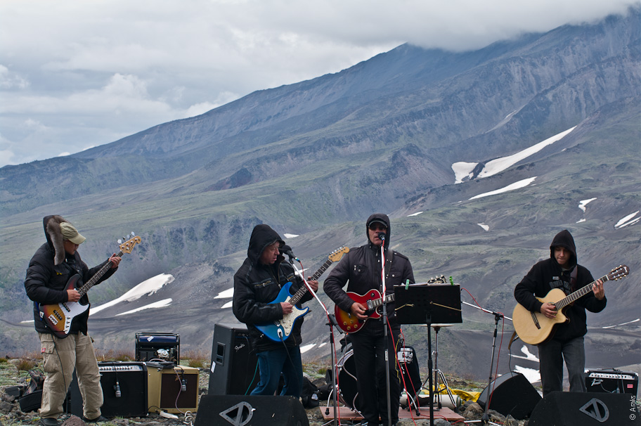 И первые зрители. Этот концерт для них, кто поднимался на вулкан.