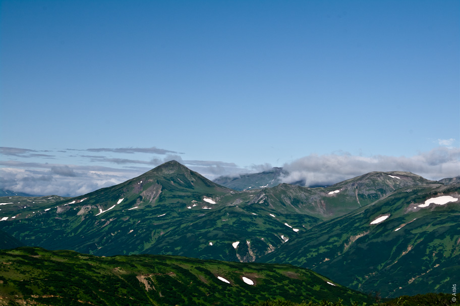 Вулкан Горелый. На вершине расположено 11 кратеров и более 30 на склонах вулкана.