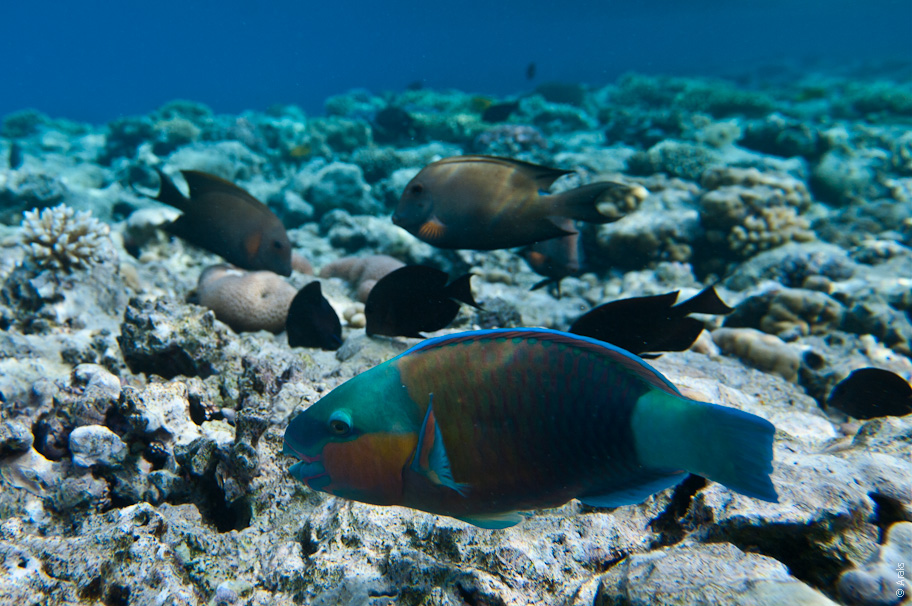 Рыба-попугай. скар крутолобый (Scarus gibbus) анг. Sheephead parrotfish.