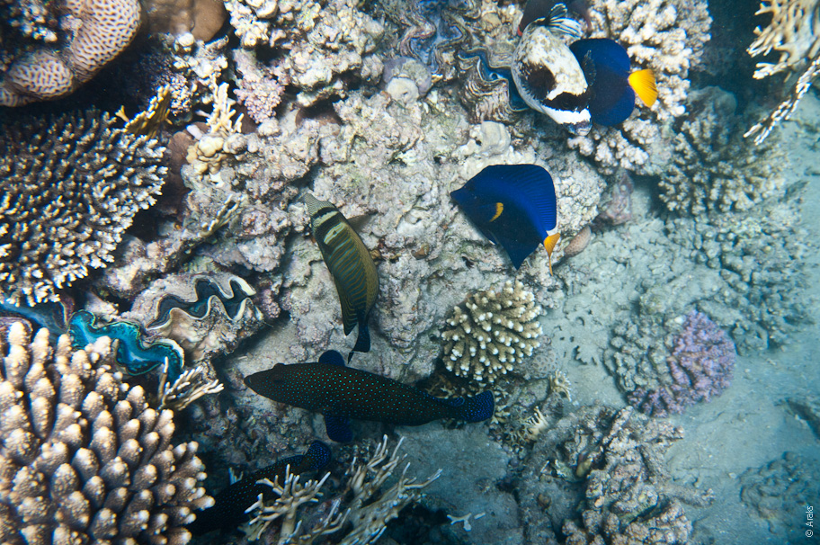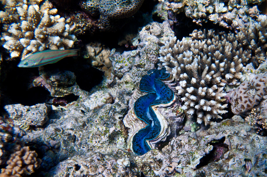 Тридакна (Tridacna) — род двустворчатых моллюсков и Талассома Клунцингера (Thalassoma rueppellii)