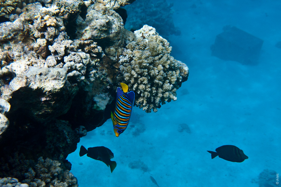 Рыба-ангел арабская (Pomacanthus asfur) англ. Arabian angelfish.; Рыба-хирург Парусоплавничная зебросома ( Zebrasoma desjardinii); Иглобрюх; Групер