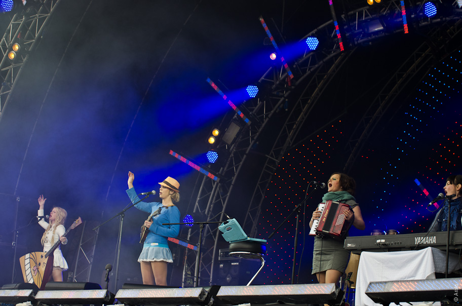 3 июля в Архангельском проходил фестиваль «Усадьба Джаз». Выступал мой любимый квартет Katzenjammer. Они не только прекрасно поют и играют на разных инструментах, но и отлично разгоняют тучи. На проверке звука пытался накрапывать дождик, но после первых мелодий вовсю засветило солнце. И настроение было тоже — задорное и солнечное. Girl-band: Турид Йоргенсен (Turid Jørgensen), Марианна Свеен (Marianne Sveen), Сульвайг Хейло (Solveig Heilo), Анне Марит Бергхейм (Anne Marit Bergheim)