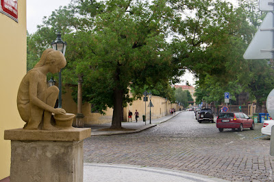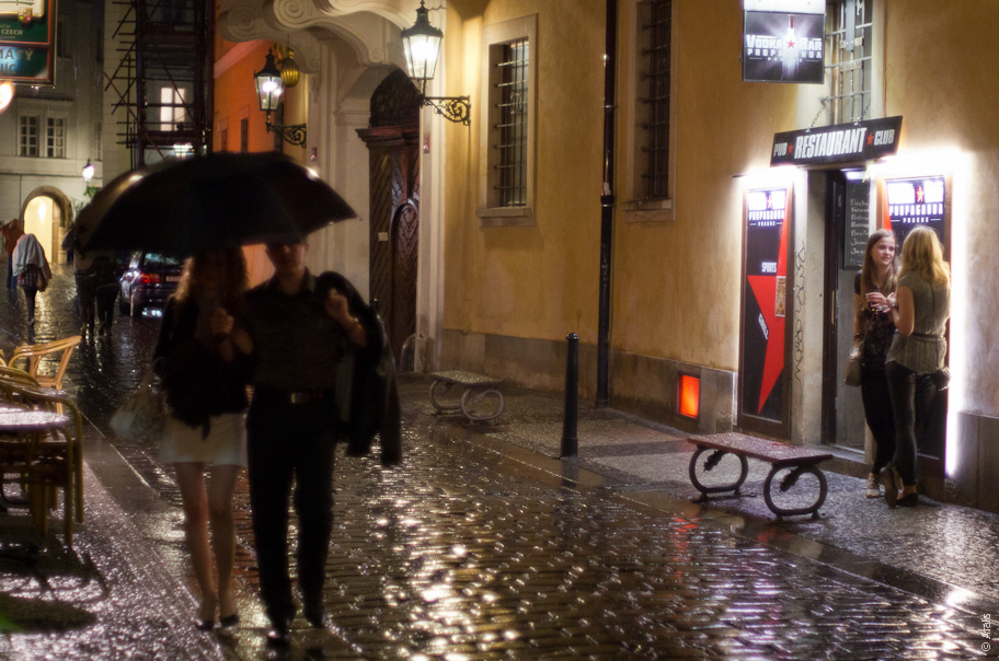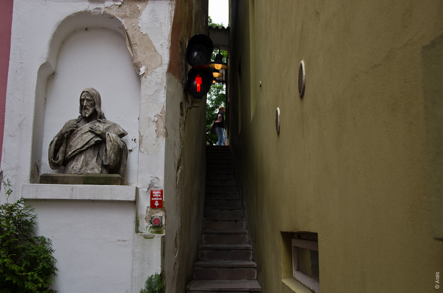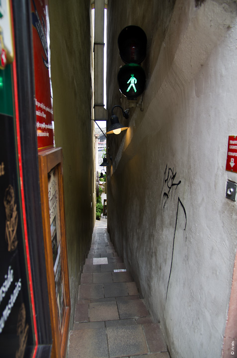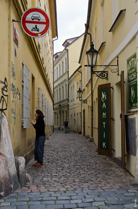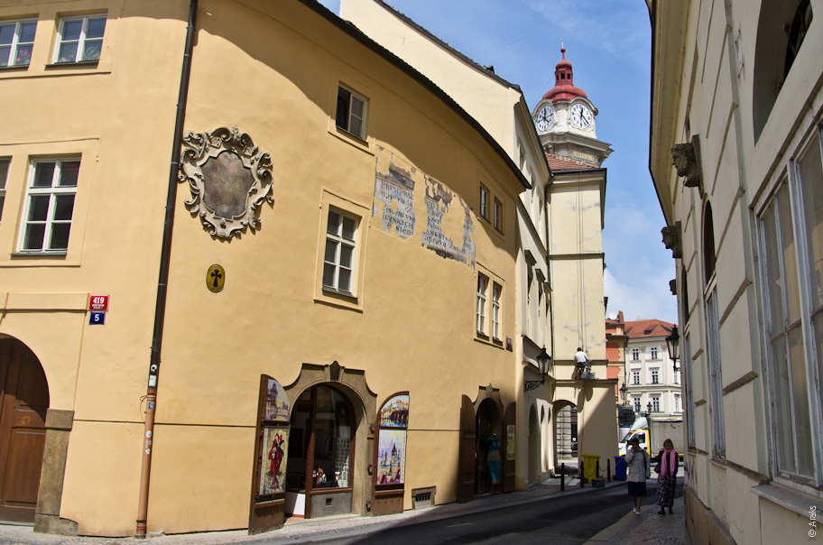 Говорят, самая узкая пражская улица. Вдвоём не разойтись.
