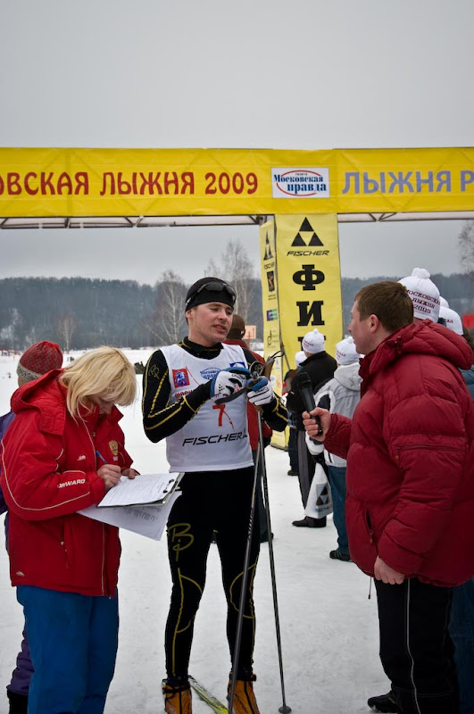Массовые традиционные лыжные соревнования «Московская лыжня – 2009» на призы газеты «Московская правда». История «Московской лыжни» началась в 1997 году, когда по совместной инициативе Правительства Москвы и Московской федерации профсоюзов для трудящихся московских предприятий и их детей, а также всех любителей лыжного спорта и активного отдыха были организованы открытые соревнования «Московская лыжня», которая все эти годы является одним из этапов «Лыжни России». Редакция газеты «Московская правда» поддержала почин организаторов и выступила информационным и призовым спонсором соревнований. В программу соревнований «Московской лыжни-2009» включены дистанции: 40 км и 10 км- мужчины и женщины; и дистанция 5 км - для юных участников в возрасте 15 лет и моложе. Для спортсменов (людей с ограниченными физическими возможностями) дистанции: 5 км, 3 км, 1 км и 500 м. (из пресс-релиза МФП)
