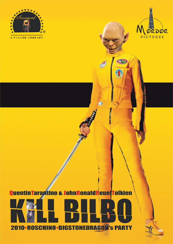 Организатору (и некогда имениннику) нами была подарена афиша, нарисованная по мотивам его интересам в ЖЖ - Kill Bill и Толкиен: