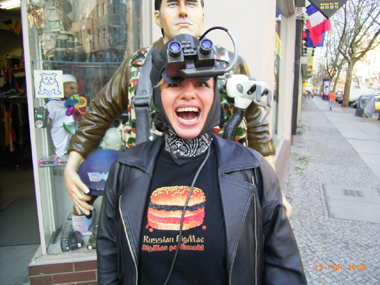 Н Е Т -ГЕРМАФРОДИТАМ ПЛАНЕТЫ ЗЕМЛЯ!! вчера провела первую берлинскую вылазку анала военной разведки Орловского бронетанкового училища в красночёрноикровой российской бигмаковке и боевом танковом шлеме с оптическим приборм ночного видения, подаренным курсантами Саратовской танковой казармы, голосующими за мою победу в конкурсе Графоман.