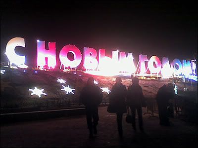 а такими гигантскими буквами нас поздравляли с Новым годом на Поклонке: