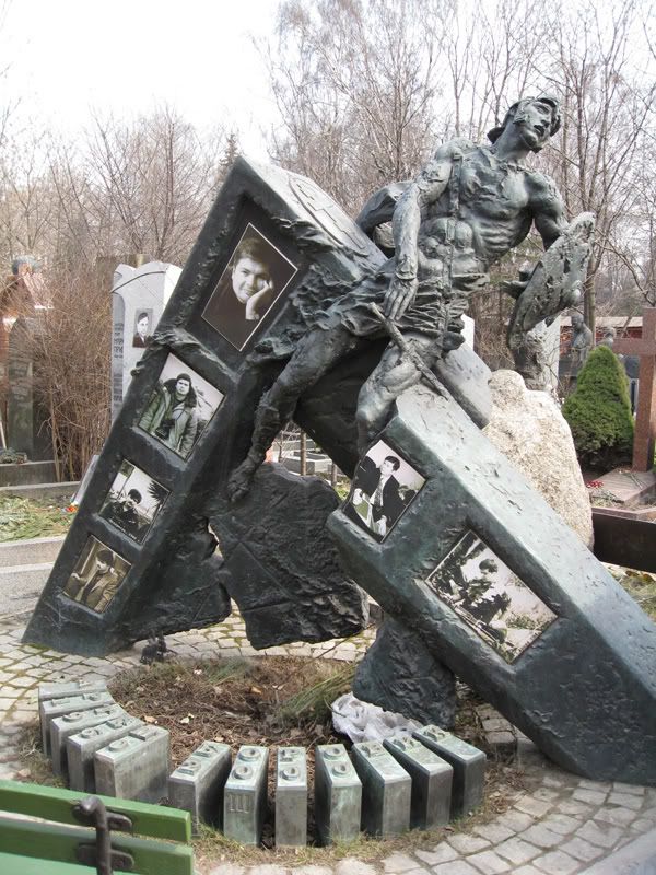 самый сильный памятник из тех, что ты тут выложила, по-моему это памятник на могиле Артёма Боровика, который неожиданно для всех погиб в авиакатастрофе и всю эту трагедию скульптор аццки просто реализовал... пипец креативно, концептуально и действительно драматично, или даже трагично - это действительно заставляет задуматься и вспомнить... автору зачот однозначно...