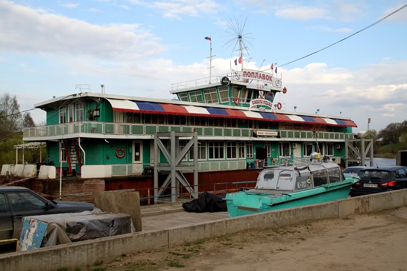 по соседству с речным вокзалом ресторан «Поплавок», тоже деревянный и тоже на воде: