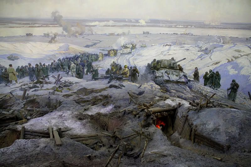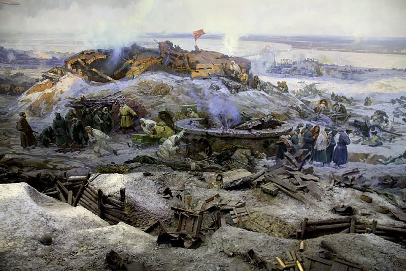 19. панорама представляет собой несколько собранных воедино сюжетов из одного дня Сталинградской битвы — 26 января 1943 года, с видом с Мамаева кургана.