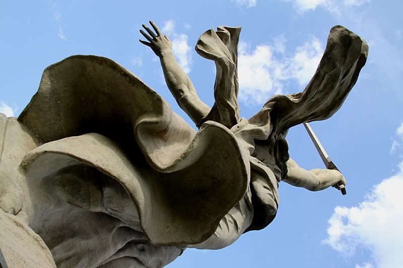 48. но если встать прямо под ней, то развивается паранойя, а не отвалится ли у нее что-нибудь. вот так стоишь и начинаешься в красках себе представлять, как у нее отваливается рука или кусок плаща, и катится, катится по склону... с такими мыслями хочется скорее бежать от нее подальше =)