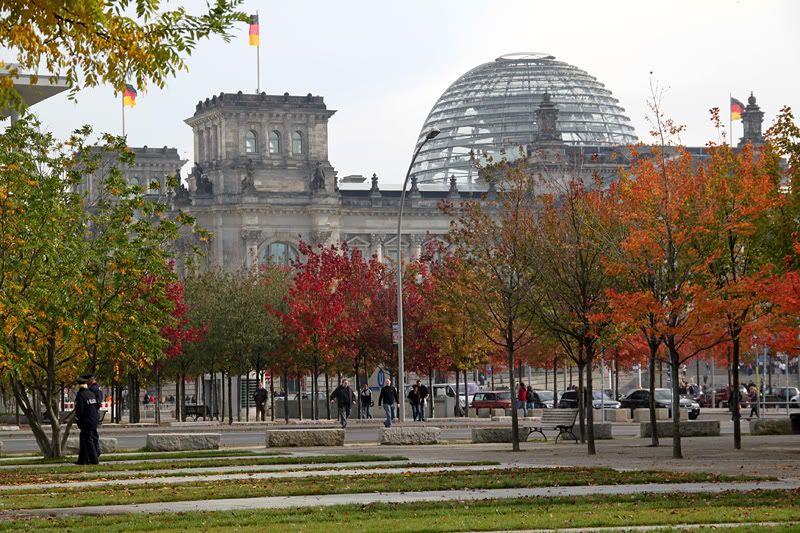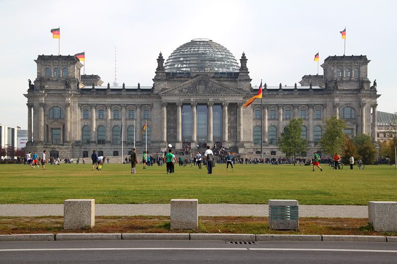 мимо Рейхстага, рядом с которым на травке развлекается народ. если присмотреться, видно, какая там гигантская очередь на вход.
