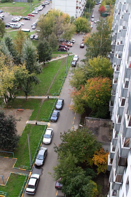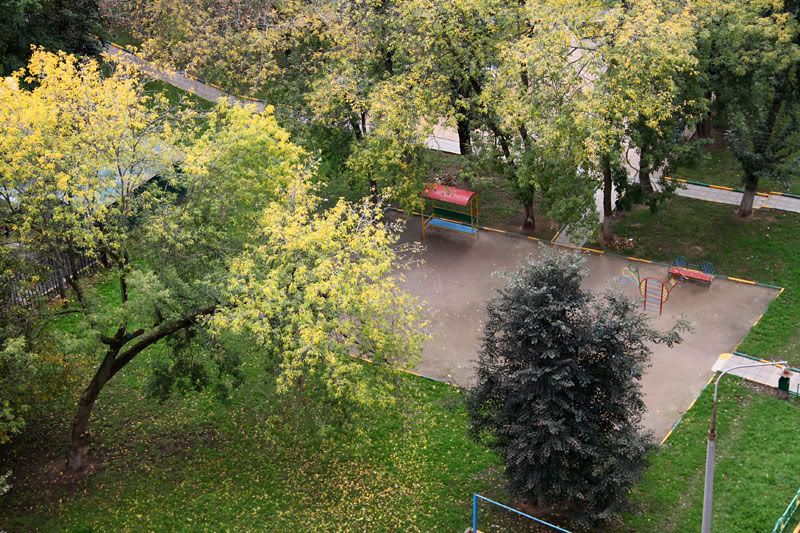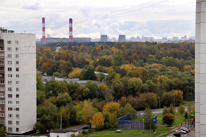 чтобы вы тут не думали, что я только красотами других мест восхищаюсь, смотрите, какая у нас тут в Москве осень красивая. деревья в этом году очень долго были зелеными и только сейчас окрасились в разные цвета. с моего двенадцатого этажа одно удовольствие любоваться, даже несмотря на пасмурную погоду.