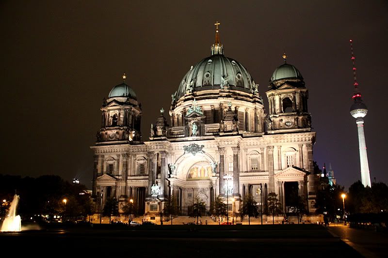 2. тот же самый вид ночью. к сожалению, уже после моего отъезда в Берлине начался фестиваль света, и собор подсвечивался очень красиво и по-разному, в том числе с использованием модных сейчас световых проекций.