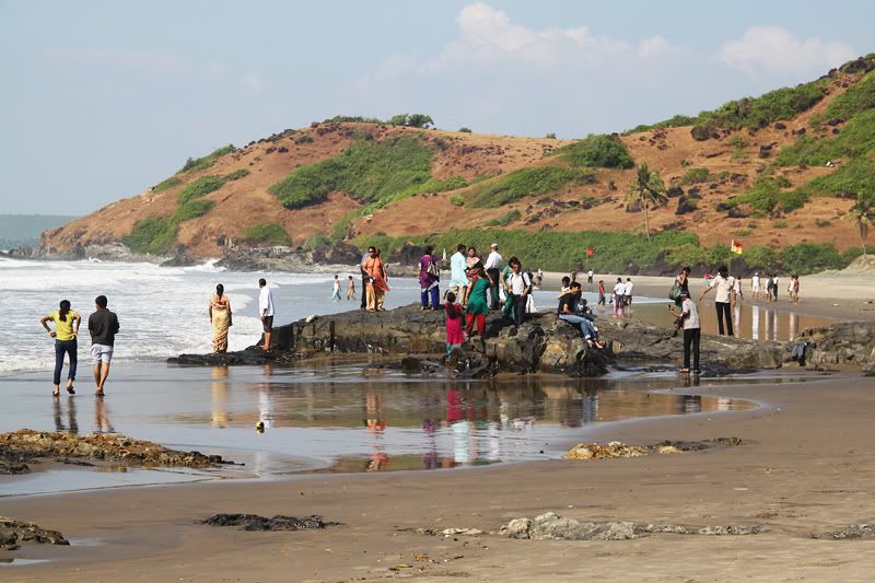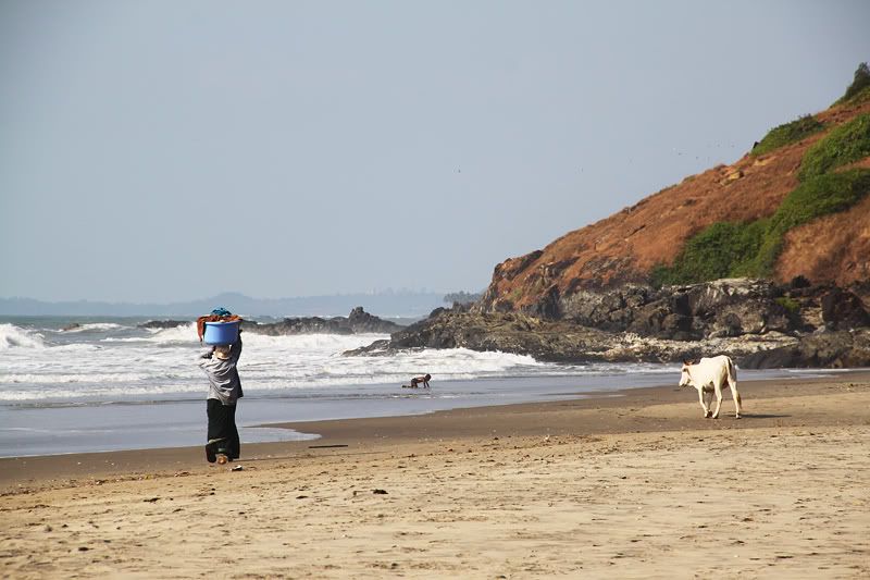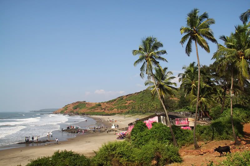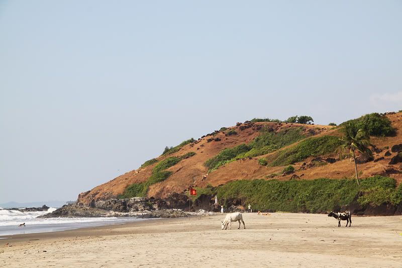 Вагатор этот пляж делится на две части - большой и малый Вагатор. мы были только на первом. наверное, на малом больше туристов, но на большом в основном индусы, продавцы всякой всячины, заезжающие по дороге туристы, как мы, и коровы, коровы и еще раз коровы. как ни странно, на наших самых северных пляжах нет такого количества коров, как на участке от Вагатора до Синкерима. а уж на пляже корову я впервые увидела именно здесь. они прогуливаются и подъедают мусор, оставленный на пляже - вылизывают использованные кокосовые орехи, с удовольствием едят банановую кожуру.