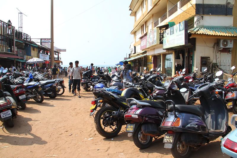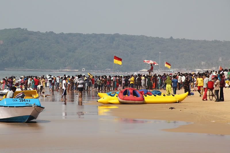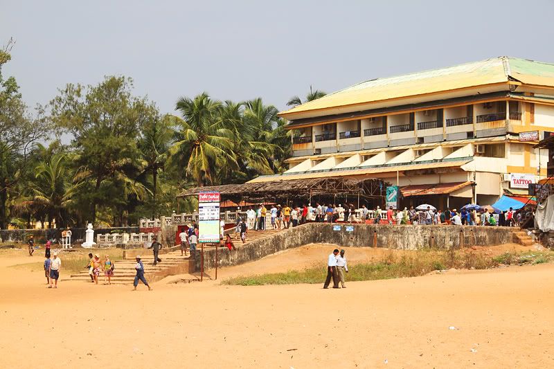 Калангут сюда приезжают по турпутевкам, здесь как нигде развита инфраструктура и тысяча людей на один квадратный метр. на въезде в городок пробки, куча сетевых магазинов, торговые центры, рестораны, напротив центральной лестницы купаются толпы индийцев, на пляже - что вправо, что влево - шек на шеке. в общем, настоящий Геленджик или Сочи. если отойти в сторону от центра, там чуть спокойнее, но все равно полно людей и приставал-продавцов, которые даже не могут запомнить, что две минуты назад уже предлагали тебе то же самое, когда ты шел в обратную сторону. боюсь, что увидеть и почувствовать настоящий Гоа попросту невозможно, останавливаясь тут.