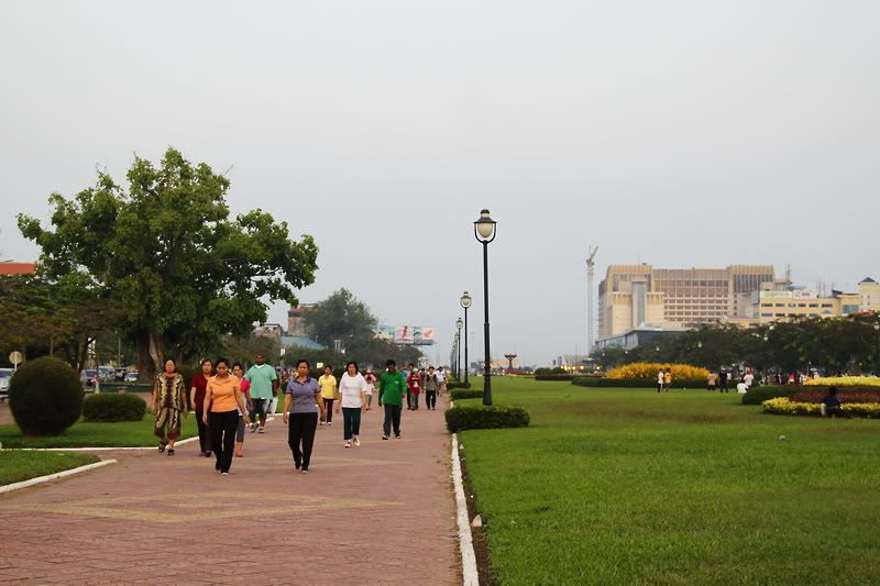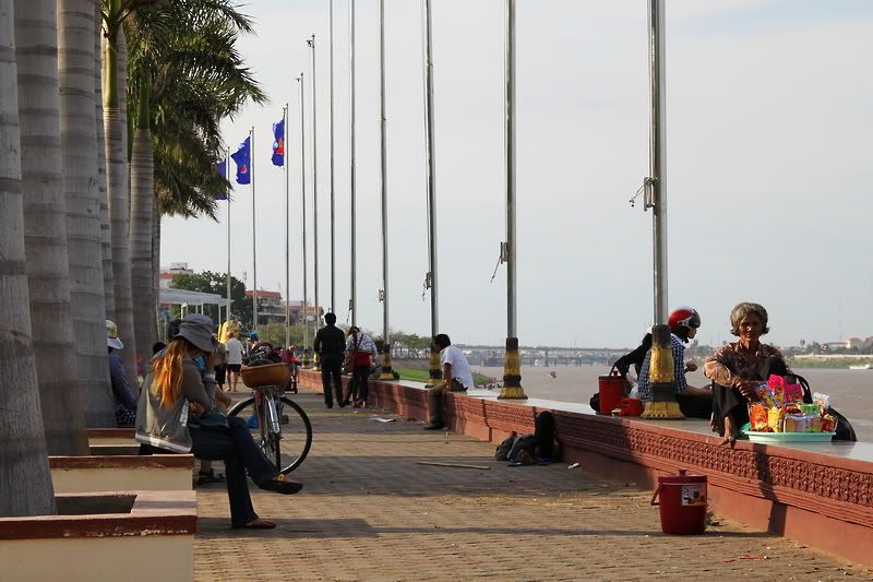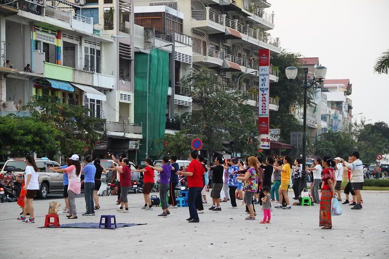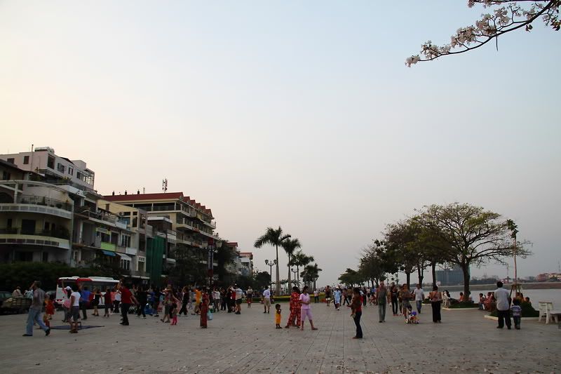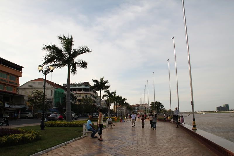 3. самое прекрасное место в Пномпене - набережная. она широкая, просторная, обдуваемая ветерком с реки (в такую жару и духоту ветер - просто райское удовольствие!), в вечернее время здесь всегда оживленно и... спортивно!