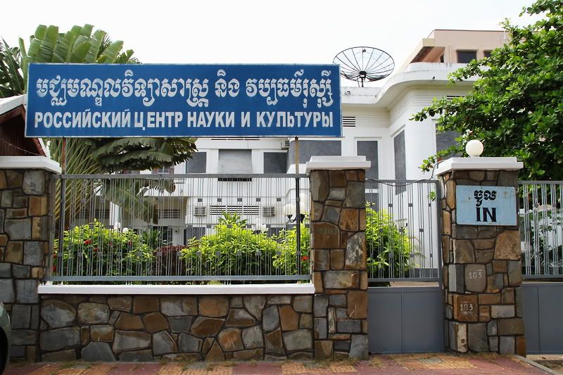 9. очень удивились, встретив такое учреждение. рядом с ним - стенд с фотками камбоджийских студентов из РУДН.