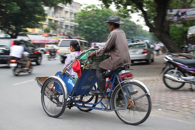 48. камбоджийский велорикша катит своего пассажира впереди себя, совсем не так, как в Индии.