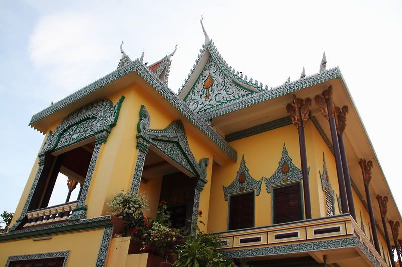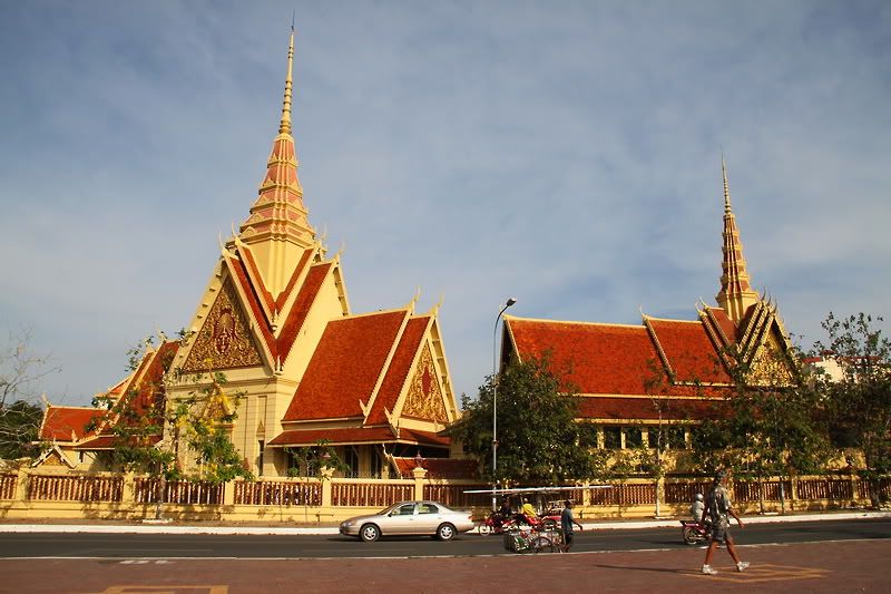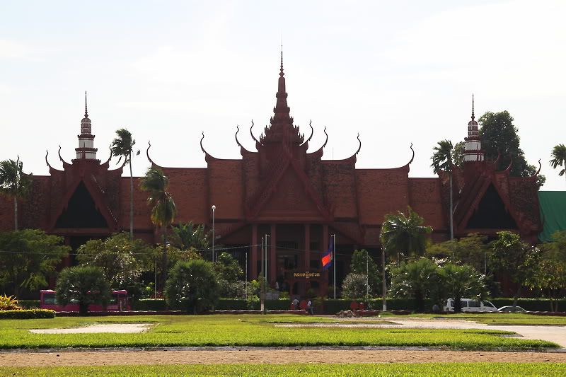 20. административная архитектура Камбоджи совершенно не отличается от храмовой, и это вводит в заблуждение. университеты, музеи, дворцы и храмы выглядят одинаково. здания красивые, но нас такой стиль стал утомлять еще в Таиланде. хотя в Пномпене, конечно, нет такого чрезвычайного обилия храмов, как в Бангкоке.