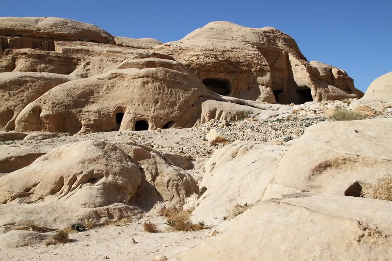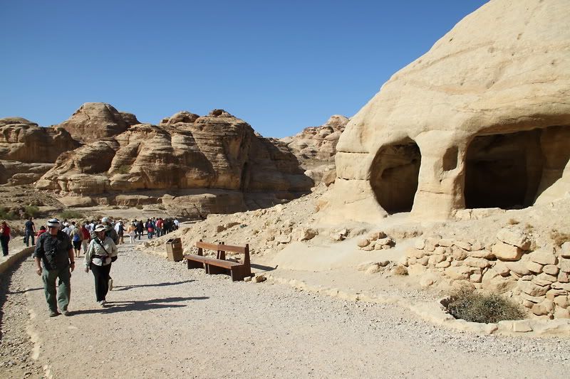 7. Скалы вокруг очень массивные, иногда с пещерами и выточенными в камне барельефами. Сразу понятно - Петра близко!