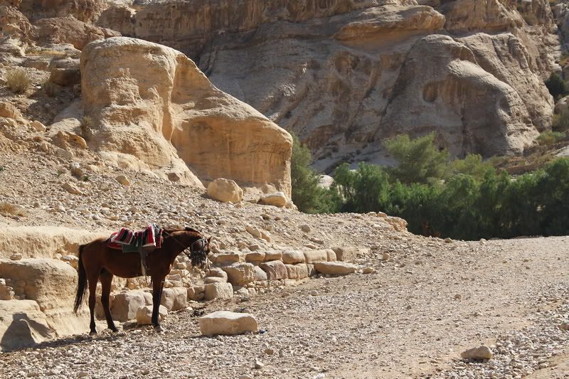 4. От Вади Мусы до каньона нужно еще достаточно много пройти пешком. Хотя для всех ленивцев и тех, у кого затруднения с пешими прогулками, тут с готовностью предлагают верховую езду и повозки, запряженные лошадьми, а вот автотранспорт сюда не пускают. Дорога к каньону разделена на две части, чтобы потоки двигающихся пешком и верхом не пересекались.