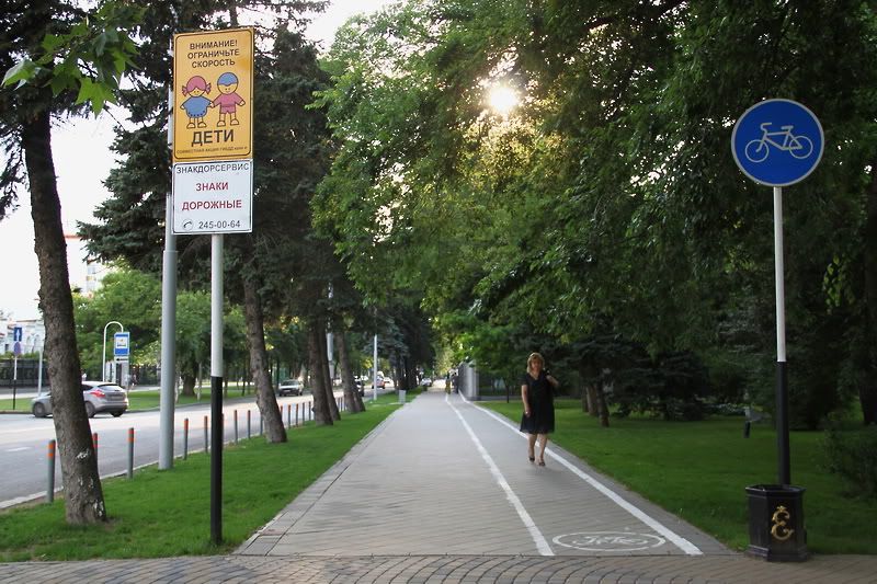 63. В парковых зонах встречаются велодорожки, но пешеходы почему-то думают, что эти узкие полосы - для них. А велосипедистов немало, но ездят они как попало - где-то по велодорожкам, а где-то нет. Вообще в Краснодаре велосипедисты очень невежливые. Носятся по тротуарам как сумасшедшие, так что от них приходится уворачиваться, потому что сами они уворачиваться не считают нужным. И в целом к пешеходам настроены как-то агрессивно. Их можно понять - ездить хочется, а велодорожек мало, пешеходы раздражают, но все-таки уважение друг к другу и безопасность на тротуарах еще никто не отменял. зато автомобилисты очень дисциплинированные: ты еще не ступил на зебру, а все ряды машин уже остановились. ну не чудо ли?)