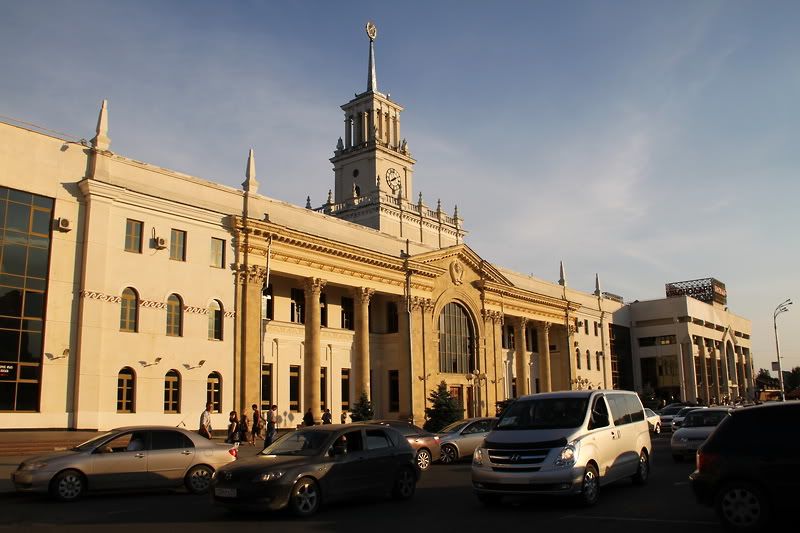 79. Ну, и краснодарский железнодорожный вокзал на закате. Уезжали мы обратно в Ростов на новороссийском поезде, и там в вагоне некоторые девочки, возвращавшиеся с морей, были уже загорелее меня. Побледнел мой азиатский загар за два-то месяца, вот прямо пичалька.