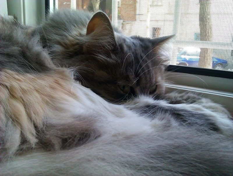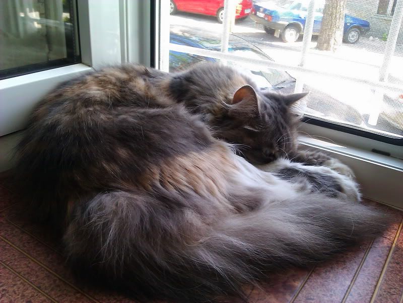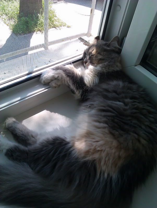 12. Ну и напоследок - несколько фотографий родительской кошки, которые я сделала за всё время пребывания в Ростове. Знакомьтесь, это Ксюша, ей четыре с половиной года, она жуткая вредина и красотка с тонной меха. Так она дрыхнет на подоконнике дни напролёт.